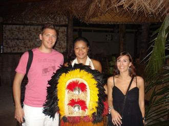 Claire et Maxime au Tiki Village MooreaPuis spectacle au Tiki village de danse Polynésienne vraiment superbe, avec la danse interdite (du feu), les chants des mamas, des tenues superbes et des danseurs… whouatch les danseurs !!!