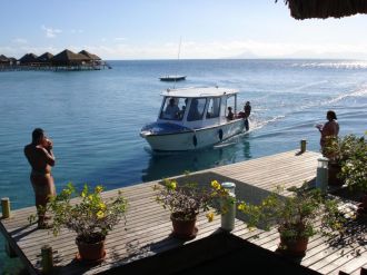 Arrivée HuaineTransfert en bateau, aucune route n’arrive à notre hôtel.