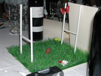 Là c'est une photo de nos centres de tables, des terrains de rugby miniatures !!!