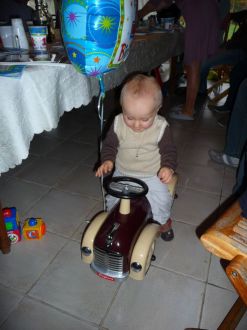 Nathan et son bolide !Tonton Ludo et tata Angélique ont offert à Nathan sa première voiture...  Message déposé le 07.11.2011 à 11:37 - Commentaires (0)