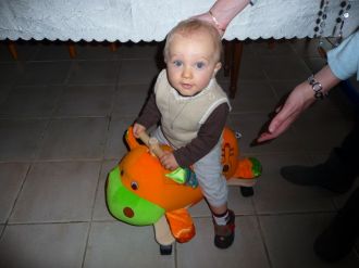 Nathan est un peu en avance par rapport à la moyenne niveau motricité (très bon équilibre, marche tout à fait acquise, il se met assis et se relève tout seul...), mais par contre, il n'a pas encore développé la parole (pas de papa/maman).