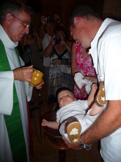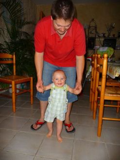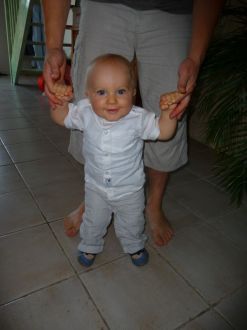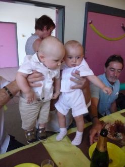 16 mois !Et un mois de plus pour notre petit loustic ! ! ! Message déposé le 05.03.2012 à 13:51 - Commentaires (0)Visite chez le pédiatre avant-hier : 9.670kg pour 78cm. "Bonne croissance" d'après le médecin. Il a 10 dents (la 3e pré-molaire est sortie en milieu de semaine dernière). Il commence à parler "papa", "maman", "titi" (pour le chat), "mam" pour manger, "ato" pour gâteau, "boum" lorsqu'il tombe... Il répète de plus en plus ce que l'on dit, et a une bonne compréhension des ordres qu'on lui donne, ce qui est très pratique, comme "va éteindre la lumière", "va ranger tes chaussures dans ta chambre", "on va aller changer ta couche" (et il va dans sa chambre devant la table à langer), "va dans le garage, on va se promener" etc etc Bon, par contre, le "non, ne touche pas, c'est une bêtise" a du mal à rentrer ! ! ! lol Mais on a de la chance, il ne touche pas à tout... Il adore être sur ses porteurs, ou faire "la bagarre" avec son gros dada. Il nous fait savoir, en touchant sa couche, qu'il est temps de le changer ! Pourvu qu'il soit propre pas trop tard (vive les économies de couches !). On verra bien ! 15 mois !Nathan est un petit farceur ! Ce matin, il a trouvé le porte bébé dans l'armoire de sa chambre. Aprés avoir joué avec les fermetures, puis l'avoir trainé dans toute la maison, il s'est dis qu'avec la neige dehors, il avait besoin d'une chapka... Il s'en est donc fait une avec le porte-bébé ! ! ! Message déposé le 05.02.2012 à 11:33 - Commentaires (0)Nathan a dit son premier mot... "Titi" pour appeler un de nos 2 chats (nommé Tigrou mais qu'on appelle "Titi"). Du coup, Cannelle s'appelle aussi "Titi" ! Par contre, toujous pas de papa/maman... Tant pis ! On se fait une raison, le chat a été choisi en 1er ! ! ! lol Il adore les comptines, sait très bien faire "Les Marionnettes", "Une poule sur un mur" et "Un petit poisson" (qui frétille très très vite d'ailleurs !). Hier, il a goûté sa 1ère merveille (faîte par Mamie Brigitte) et il a trouvé ça à son goût ! Il fait "Tchin" avec son gobelet (digne héritier de son arrière grand-père, grand-père et tonton !). Pas de visite chez le pédiatre de prévu ce mois-ci, donc pas de mensurations. Mais ces cheveux poussent bien ! ! ! Peut être qu'il ira chez le coiffeur pour ses 2 ans... lol ![]() 14 mois !Voici notre petit Loulou a 14 mois. Message déposé le 16.01.2012 à 14:59 - Commentaires (1)Une 7e dent a pointé le bout de son nez la semaine dernière, et 3 autres sont dans les starting-blocks (dont 2 pré-molaires). Nathan est un peu en avance par rapport à la moyenne niveau motricité (très bon équilibre, marche tout à fait acquise, il se met assis et se relève tout seul...), mais par contre, il n'a pas encore développé la parole (pas de papa/maman). Il commence à savoir utiliser la cuillère pour manger des petits morceaux, et il nous imite de plus en plus, c'est marrant ! ! ! Il atteint à peine les 9.5kg pour 75 cm (à confirmer pour la taille...). Sapin de noël !Message déposé le 16.01.2012 à 14:42 - Commentaires (0) Bonne Année !Nous vous souhaitons une excellente année 2012 ! Message déposé le 16.01.2012 à 14:23 - Commentaires (0)Quelle soit riche en amour, éclats de rire et BONHEUR ! ![]() Premiers pas...Je suis extrêmement en retard pour vous relater les derniers exploits de Nathan. Message déposé le 30.11.2011 à 10:28 - Commentaires (0)Il a donc fait ses premiers pas 3 jours après son anniversaire, entre papa et maman. Puis tout est allé très vite, il a fait 3 mètres une semaine après ! Et depuis 10 jours, il est capable d'aller de sa chambre à la cuisine sans problème. Bien sûr, de temps en temps, y'a des chutes, mais ça le fait rire, alors il en joue un peu ! Et il est également capable de se baisser pour ramasser un objet et se relever pour continuer à marcher ! ![]() Dents !Ouf ! Nathan doit se sentir mieux ! Message déposé le 22.11.2011 à 11:00 - Commentaires (0)3 dents de sortie en 2 semaines, il rattrape son retard ! ! ! Bilan : 2 dents en bas, 4 en haut ! Espérons qu'il va avoir un peu de répit maintenant, parce que même s'il ne dit pas grand chose, ça ne doit pas être agréable des dents qui poussent ! ! ! Objet roulant non identifié...Message déposé le 07.11.2011 à 11:41 - Commentaires (0) 1er bolide !Message déposé le 07.11.2011 à 11:40 - Commentaires (0) Nathan et son bolide !Message déposé le 07.11.2011 à 11:37 - Commentaires (0) 1 an ! ! ! Vendredi dernier, Nathan a eu 1 an ! Mon "grand" garçon ! Message déposé le 07.11.2011 à 11:30 - Commentaires (0)Nous avons fêté son anniversaire avec les amis et la famille samedi midi. Il a été gâté notre petit loulou ! Merci à tous ! Que d'évolution en 1 an ! ! ! Nathan a eu sa 3e dent lorsqu'on était à Troyes, à 4 jours de son anniversaire ! Il en a 3 autres qui ne devraient plus tarder... Notre loulou marche lorsqu'on le tient avec une main, et court avec les 2 ! Il se déplace néanmoins tout seul en se tenant aux meubles, et passe de l'un à l'autre en se lâchant quelques secondes... la marche n'est vraiment plus très loin. Du coup, comme il se consacre à la marche, il ne dit pas un mot. Chaque chose en son temps ! Visite des 12 mois chez le pédiatre demain, avec vaccin à la clé ! Alors, notre loulou est encore pile dans la moyenne, "comme dans les livres" dixit la puéricultrice de la PMI : 74 cm pour 9.360kg. Nigloland suite !Message déposé le 07.11.2011 à 11:23 - Commentaires (0) Nigloland suite !Message déposé le 07.11.2011 à 11:22 - Commentaires (0) Nigloland !Message déposé le 07.11.2011 à 11:20 - Commentaires (0) TROYES !Nous avons profité du week-end prolongé de la Toussaint pour aller rendre une petite visite à tonton Romain et tata Sylvianne, qui habitent à Troyes. Message déposé le 07.11.2011 à 11:19 - Commentaires (0)J'appréhendais un peu les 5h30 de route avec Nathan, mais au final, égal à lui-même, ça s'est trè