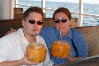 Dîner en amoureux...Message déposé le 28.11.2008 à 15:32 - Commentaires (0) Voiture de locationMessage déposé le 28.11.2008 à 15:31 - Commentaires (0) Le glacier suite...Message déposé le 28.11.2008 à 15:30 - Commentaires (0) Le glacier !Message déposé le 28.11.2008 à 15:28 - Commentaires (0) Pause détenteMessage déposé le 28.11.2008 à 15:27 - Commentaires (0) Encore une plage...Message déposé le 28.11.2008 à 15:24 - Commentaires (0) Une belle plage !Message déposé le 28.11.2008 à 15:21 - Commentaires (0) Récit Voyage de noces - Site et fin !Le jeudi matin, nous réceptionnons notre petite voiture de location. Julien ayant oublié son permis à la maison, c’est moi qui vais donc conduire…à gauche ! ! ! Les premières minutes sont assez dures, il faut s’habituer à passer les vitesses de la main gauche… mais ce qui est le plus difficile à assimiler, ce sont les clignotants qui du coup, se trouvent à droite ! Et bien je peux dire que je mettais souvent en marche les essuie-glaces à la place des clignotants ! ! ! Message déposé le 28.11.2008 à 15:19 - Commentaires (0)Nous décidons de faire le tour de l’île, munis de notre carte touristique. Les routes sont bien entretenues, comme chez nous, sauf qu’il n’y a pas (ou très peu) de bas-côtés ! Et qu’il faut se serrer sur certaines routes montagneuses quand le bus arrive en face ! ! ! Nous avons donc sillonner l’île du Nord au Sud, on nous arrêtant quand l’endroit nous plaisez ! De retour à l’hôtel en milieu d’après-midi, nous décidons d’aller faire un tour au bar, prendre un petit cocktail et un quatre heures, vu que nous n’avons pas déjeuné. En effet, nous avons opté pour la formule « gros petit déjeuner le matin, petit quatre heures et dîner le soir ». Donc nous ne déjeunons pas le midi ! En plus, au Hilton, ils proposent un « after tea » gratuit : un dessert qui change tous les jours. Et aujourd’hui, c’est beignet de pommes ! ! ! hum ! La journée se continue sur notre terrasse, à profiter de la vue et à lire, puis à la piscine, à la nuit tombée… Très joli le jeu de lumières sous l’eau ! Le vendredi matin, nous reprenons notre voiture pour aller à Victoria, la capitale. En effet, la fin du séjour approche, et il nous faut trouver les cadeaux-souvenirs pour nos proches (et pour nous aussi !). Nous passons donc la matinée et le début d’après-midi à Victoria. Nous prenons notre « quatre-heures » chez un glacier français… mais sommes déçus par les glaces, pas top… Nous rentrons à l’hôtel et nous nous reposons sur notre terrasse. A 18h, direction le spa pour une heure (1h 15 pour moi) de massages ! Le pied ! ! ! Première expérience pour Julien qui trouve ça pas trop relaxant : disons qu’il était crispé pour ne pas rigoler car ça le chatouillait ! Nous sortons du spa vers 20h30, hop, une petite douche et direction le restaurant pour le dîner. Encore une fois, c’est très bon ! Samedi : dernier jour aux Seychelles ! Nous décidons de ne pas bouger de l’hôtel, de nous reposer et de profiter à fond de la plage ! ! ! Histoire d’avoir quand même quelques couleurs (timides) en revenant en métropole ! ! ! Et bien nous avons découvert que l’après-midi, à la plage, il y avait distribution de brochettes de fruits frais ! ! ! Dommage que ce soit le dernier jour ! ! ! Cette journée a donc été calme. Le soir, nous préparons les valises, avant de nous rendre pour la dernière fois au restaurant, pour le dîner. Dimanche matin : lever à 5h25, petit déjeuner servi dans la chambre à 5h30. La navette nous prend les 1ers, devant le Hilton. Puis nous allons dans un 2e hôtel, prendre d’autres touristes. 1 heure plus tard, nous arrivons devant l’aéroport. Là, on fait la queue pour s’enregistrer, puis on passe à la douane, re-attente de plus d’1 heure dans la salle d’embarquement. Ca y est, enfin, on embarque ! Nous sommes encore assis à l’avant de l’appareil, côté gauche. Le vol se déroule sans encombres… Comme il fait beau, je peux voir les paysages de la Somalie (terre très rouge et aride), du Yémen, de l’Arabie Saoudite… Le temps commence à être nuageux en Egypte, ce qui fait qu’on ne peux pas apercevoir les pyramides… tant pis… On traverse la Méditerranée et là le temps devient carrément nuageux, une chape de nuages, et je ne vois plus rien ! ! ! Heureusement, on commence à perdre de l’altitude et on passe « sous’ les nuages ! Et bientôt, Paris apparaît… magnifique ! ! ! Je reconnais le Louvre avec les jardins du Luxembourg, les Champs Elysées, la Tour Eiffel… C’est vraiment beau vu dans haut quand c’est tout illuminé ! ! ! Nous atterrissons vers 18h00, heure locale. Nous récupérons nos bagages et nous mettons à la recherche du « point navette » pour prendre la navette de l’hôtel. Notre « chance » légendaire nous rattrape à peine arrivés en métropole ! Nous trouvons facilement l’emplacement, et nous commençons à attendre dans le froid, espérant que la navette arrive bientôt… Nous voyons passer une 1e navette, mais pas avec le nom de notre hôtel, puis une 2e, une 3e… Enfin, on en voit une avec écrit, entres autres, « Ibis ». Nous montons et nous installons. Mais par acquis de conscience, Julien demande si c’est la bonne navette… Et il a bien fait, car ce n’était pas celle de notre hôtel, bien que ce soit aussi un Ibis ! Donc nous redescendons et reprenons notre attente dans le froid ! Et là, on voit repasser la 1e navette, puis la 2e et ainsi de suite… Au bout de ¾ d’heure, j’étais sur le point d’appeler l’hôtel quand on voit arriver notre navette ! Miracle ! ! ! Et cette fois-ci, c’est la bonne, qui nous emmène jusqu’à notre hôtel… Ouf, enfin, on peut se poser dans notre chambre ! Rien à voir avec le Hilton, mais pour passer juste une nuit, c’est très bien ! D’autant plus qu’il est situé dans un