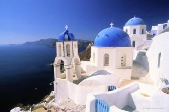 Lionel et moi avons choisi notre destination : SANTORIN, île grecque des Cyclades perchée sur un ancien volcan.