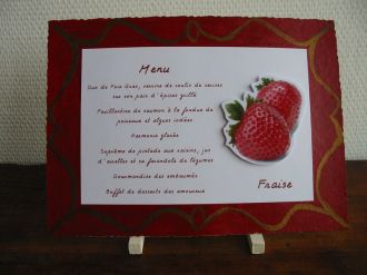 Voila les fameux menus (vous pouvez voir comme on s'est régalé! Miam Miam!) qui servait également de noms de table.