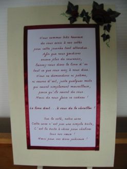 Nous avons eu de la musique (merci Flo pour avoir joué le DJ), un discours un peu agrémenté (c'est à dire version longue... lol) et nous (enfin moi et Stef a suivi... lol) avions décidé de nous réciter des poèmes l'un à l'autre.