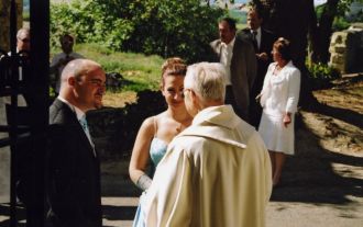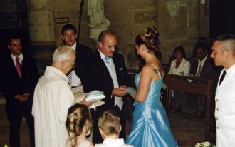 A l'église 05Un des moments les plus émouvants de cette merveilleuse journée : l'échange des consentements. Vous pourrez admirer la cocentration intense de mes deux témoins !  Message déposé le 09.09.2007 à 18:47 - Commentaires (0)