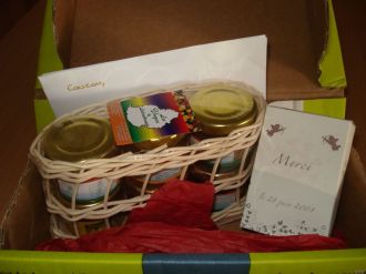 Hier matin, 9h15, la factrice sonne... "J'ai un colis pour vous" me dit elle! Tiens donc, mais qui est ce??Je regarde l'expéditeur, et bien c'était Mme Laëtitia (et Morgan 28/06/2008). Quelle surprise!!!