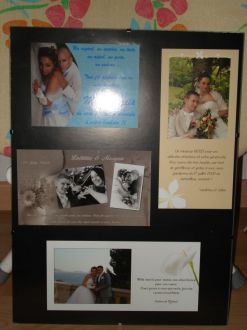Voici ce que j'ai réalisé avec les cartes de remerciements que j'ai reçu de la part de mes copinautes Audrey&Cyril, Laetitia&Morgan et Smina&Djamel ainsi que notre carte de remerciements.