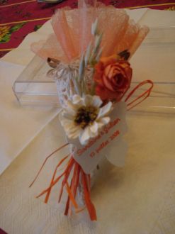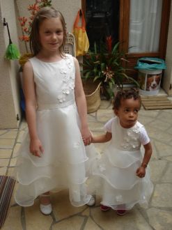 Il y a 1 an... Le samedi 3 novembre 2007 aux alentours de 9h, j'ai pris la direction de Mérignac (33), accompagnée de ma Maman, ma soeur, Anne-Laure et Marianne (mes 3 témoins). Message déposé le 03.11.2008 à 08:59 - Commentaires (2)J'avais pris RDV à 11h, et c'est avec 1/4 d'heure de retard que nous sommes arrivés aux"Mariés de Bordeaux" (c'est moi qui conduisait, et on s'est un peu pommé dans Mérignac hi hi!!) Et oui, cela fait 1 AN aujourd'hui que j'ai rencontré MA robe!!!! Snif, snif!! Là aussi, que de nostalgie... Je vous mets les photos des 5 robes que j'ai essayées et parmi lesquelles je l'ai choisie. Ne regardez pas tête, on aurait dit que j'étais choutée, c'était l'émotion je crois... hi! hi! Robe 1 ![]() Robe 2 ![]() Robe 3 ![]() Robe 4 ![]() Robe 5 ![]() Après avoir hésité entre la 3 et la 5, je me suis finalement décidé sur celle que vous savez. C'était celle qui me mettait le plus en valeur, et le clou du clou, elle avait un bustier à lacets, et je savais que mon Chéri adoooooore les bustiers à lacets!!! Alors j'ai dit c'est celle là!! La majorité des personnes qui m'accompagnaient ont approuvé mon choix. Nous avons repris la route en début d'après midi après avoir mangé au Quick, et je ne vous cache pas que j'étais sur un petit nuage; j'imaginais trop le jour J et j'étais très impatiente!!!! Je pense que c'est à partir de ce moment là qu'on réalise vraiment qu'on va se marier!!!! Le coin des photos souvenirsNous avons fait des panneaux de nous, de notre enfance à notre rencontre, et de notre rencontre jusqu'au mariage, et un panneau résumant nos enterrements de vie de célibataires. Message déposé le 17.07.2008 à 22:50 - Commentaires (1) Le coin des cadeaux aux invitésMessage déposé le 17.07.2008 à 22:48 - Commentaires (2) Déco extérieure de l'EgliseLe vendredi soir, nous avions RDV avec le couple qui se mariait juste avant nous à la mairie et à l'église, pour décorer l'extérieur Message déposé le 17.07.2008 à 22:43 - Commentaires (3) Déco salleMessage déposé le 17.07.2008 à 22:37 - Commentaires (3) Coeur en ballonsMessage déposé le 17.07.2008 à 22:35 - Commentaires (3) Vendredi suiteMessage déposé le 17.07.2008 à 22:32 - Commentaires (1) Journée du vendrediLe vendredi à 9h, une vingtaine de personnes nous ont rejoins à la salle pour nous aider à décorer. Séverine dirigeais les opérations, et tout c'est bien passé. Message déposé le 17.07.2008 à 22:29 - Commentaires (0)Nous remercions encore toutes ces personnes pour leur aide!!! Petit coup de speed...On vient d'essayer d'appeller le DJ pour savoir à quelle heure il arrivait à la salle demain, et les 2 numéros de téléphone que nous avons ne sont plus attribué... Message déposé le 11.07.2008 à 20:59 - Commentaires (0)Nous espérons qu'il ne nous a pas oublié... ManucureA 14 h, j'avais rdv pour la manucure, le résultat est bluffant!!! Message déposé le 11.07.2008 à 19:03 - Commentaires (0)Désolée, je n'ai pas encore de photos, je vous montrerai plus tard!! Déco de la salleOn a presque terminé la déco de la salle. Il faut qu'on y retourne ce soir après manger, pour fignoler un peu. Message déposé le 11.07.2008 à 19:01 - Commentaires (0)Nous sommes très contents du résultat, c'est vraiment très beau!!! Encore merci aux personnes qui nous ont aidés, et surtout à Séverine pour ses idées géniales!!! PréparatifsCette après midi, nos amis de Lourdes, Geneviève et Patrick (Témoin mairie de Julien), arrivent pour nous prêter mains fortes, ce qui est super sympa de leur part... Mon tonton et ma tati de Narbonne arrive aussi ce soir pour nous aider à la décoration de la salle. Message déposé le 10.07.2008 à 14:26 - Commentaires (1)Donc demain c'est déco toute la journée, et nous remercions d'avance toutes les personnes qui ont eu la gentillesse de se proposer et de se libérer pour venir nous aider. Merci beaucoup!!! On avance suite!!On a terminé le support du menu, le support plan de tables ainsi que le support de la description des noms des tables. Message déposé le 09.07.2008 à 21:50 - Commentaires (2)Il nous reste maintenant à terminer le panneau des photos des EVC. D'ailleurs on s'y remet! Allez hop!! Au travail !!Wouah, Julien en pleine action! Admirez! Il était très concentré, et il a fait du super boulot!! Bravo mon chéri!!! Message déposé le 09.07.2008 à 20:07 - Commentaires (3) Départ suite... Whisky qui a l'air navré!!! Message déposé le 09.07.2008 à 20:04 - Commentaires (2)Ben oui le pauvre, fallait bien le caser dans la voiture, on allait pas le laisser tout seul à la maison!!! Départ bis bisMessage déposé le 09.07.2008 à 20:02 - Commentaires (0) Départ bisMessage déposé le 09.07.2008 à 15:30 - Commentaires (2) EsthéticienneCe matin, j'avais RDV pour me faire arracher tous ces vilains poils qui nous ennuient au quotidien!! Message déposé le 09.07.2008 à 15:16 - Commentaires (3)Au programme : sourcils, lèvres, aisselles, maillots et jambes entières. J'y suis restée 1h10... Aïe, aïe, aïe!! L'esthéticienne est très sympa. J'y retourne demain matin pour le tanning. Des nouvelles !Je n'ai pas pu donné de nouvelles avant car chez les parent de Julien, il y a des soucis de connexion, donc un accès à Internet très irrégulier. En plus, il m'est impossible de consulter mes messages à distance, alors je suis dég!!!! Mais j'arrive à lire vos coms en allant sur mon blog. Message déposé le 09.07.2008 à 15:12 - Commentaires (1)Actuellement, je ne suis pas stressé par rapport au jour J, mais très agacée par diverses choses qui tournent autour du jour J... Je ne rentrerai pas dans les détails, beaucoup d'entres vous ont du rencontrer le problème. De plus je suis très suceptible, donc je prend la mouche pour pas grand chose... je me doutais qu'en arrivant à Agen on nous mettrait la pression... Voilà, donc non, je ne suis pas stressée mais très très agacée!!! D