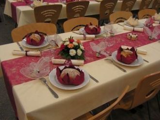 On ne sait pas encore si nos tables seront rondes ou rectangulaires mais j'aime bien l'idée des chemins de table en longueur ...