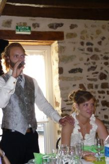 Un grand merciAprès un petit dimanche bien tranquille, des aurevoirs difficiles avec les proches qui ont repris la route, un lundi ménage et rangement, Message déposé le 07.07.2008 à 19:40 - Commentaires (0)il nous reste à tous vous remercier chaleureusement : ON VOUS AIME !!!!!!!! Dimanche tranquilleMessage déposé le 07.07.2008 à 19:30 - Commentaires (0) Dimanche repos pour certainsMessage déposé le 07.07.2008 à 19:29 - Commentaires (0) Retour au gîteMessage déposé le 07.07.2008 à 19:28 - Commentaires (0) La doucheMessage déposé le 07.07.2008 à 19:27 - Commentaires (0) Dimanche matinMessage déposé le 07.07.2008 à 19:26 - Commentaires (1) Grosse ambianceMessage déposé le 07.07.2008 à 19:25 - Commentaires (0) Le dessertJ'allais oublier la présentation des desserts : grand moment d'émotions encore une fois grâce à la musique fort bien choisie Message déposé le 07.07.2008 à 19:23 - Commentaires (0)"on vous souhaite, tout le bonheur du monde" Soirée dansanteMessage déposé le 07.07.2008 à 19:22 - Commentaires (0) Séquence émotions !Message déposé le 07.07.2008 à 19:20 - Commentaires (0) Chorégraphie hordesqueMessage déposé le 07.07.2008 à 19:19 - Commentaires (0) Place aux jeuxMessage déposé le 07.07.2008 à 19:17 - Commentaires (0) DînerMessage déposé le 07.07.2008 à 19:16 - Commentaires (0) La soiréeMonique, Christian, Xavier et Damien ont aussi prononcé quelques mots très touchants ! Message déposé le 07.07.2008 à 19:15 - Commentaires (0) La soiréeMessage déposé le 07.07.2008 à 19:14 - Commentaires (0) La soiréeMessage déposé le 07.07.2008 à 19:13 - Commentaires (0) La soiréeMessage déposé le 07.07.2008 à 19:13 - Commentaires (0) Arrivée au GîteMessage déposé le 04.07.2008 à 11:35 - Commentaires (0) Direction le GîteMessage déposé le 04.07.2008 à 11:34 - Commentaires (0) La CathédraleEnorme du début à la fin !!! Message déposé le 04.07.2008 à 11:32 - Commentaires (1)Concentré d'émotions pures, depuis l'entrée au bras de nos parents, pendant la messe grâce au Père Le Jarriel, aux grandes orgues, aux chants de Roselyne... jusqu'à la sortie sous les cotillons !!! Ce que nous avons ressenti est indescriptible, nous avons profité de tous les instants, nous avons sur-kiffé comme dit Marie-Anne !! Laissez-nous vos impressions ! Direction la CathédraleMessage déposé le 04.07.2008 à 11:25 - Commentaires (0) Sortie de la MairieMessage déposé le 04.07.2008 à 11:24 - Commentaires (0) La MairieQuel moment ! C'est une grande joie pour nous de nous découvrir et de dire bonjour à tous nos proches qui se sont déplacés pour cette journée. Message déposé le 04.07.2008 à 11:23 - Commentaires (0)Merci à Mme Dubois, adjointe au Maire, qui a célébré notre mariage civil et qui a su y mettre une petite touche personnalisée. C'est aussi un merci à Barbara qui lui a proposé étant amie avec sa fille. Samedi Jour JOn y est c'est le grand jour !!! Message déposé le 04.07.2008 à 11:19 - Commentaires (0)Réveil à 7h45 pour moi, la boule au ventre il faut l'avouer... Direction l'appart de Barbara pour déposer ma robe et mes petites affaires, puis retour à la maison où j'ai lâché la voiture afin d'aller chez le coiffeur à pied. Mathilde aussi était très stressée, coiffer la mariée ce n'est pas rien ! Après le maquillage et le coiffage retour chez Barbara qui avait préparé un petit brunch. Soso nous a rejoint et l'habillage a pu commencé ! Enorme d'enfiler la robe pour LA journée, beaucoup d'émotions ! Il a fallu ensuite descendre les marches de l'immeuble de Barbara puis nous nous sommes dirigées vers la Mairie où j'ai rejoint Oliv... rien que de l'écrire je ressents encore l'émotion immense que cela a été de voir son regard posé sur moi, et moi de le découvrir en marié ! Pendant que je me préparais, Oliv s'est douché, rasé, coiffé et a pris le chemin de la Morinière pour s'habiller et préparer la 2CV. Monique est allée installer les fleurs à la Cathédrale, Papa, Catherine, Manon, Charlyne et Laurent se sont préparés à la maison. Il y a eu surement un millier de petites choses de faites ce matin, Oliv et moi étions déjà sur notre petit nuage ! Ours de la montagneSpéciale dédicasse à l'ours de la montagne !! Message déposé le 16.04.2008 à 20:33 - Commentaires (0)Quand j'ai eu Oliv au tél pour lui annoncer la nouvelle, je crois qu'il en aurait pleuré... Eh oui, Michel Gleize de Réallon et sa chérie seront présents au mariage ! C'est énorme et nous sommes absolument ravis !!! Que du bonheur ! On a réussi à faire descendre Michel de sa montagne ! Hey Mitch, c'est où la photo là ? Chambre nuptialeEn mettant à jour le lien Internet de notre gîte, j'ai vu que de nouvelles photos ont été rajoutées, notamment une de la chambre nuptiale... Message déposé le 04.07.2007 à 19:34 - Commentaires (1)![]() Spéciale dédicace à MorganeMessage déposé le 04.07.2007 à 19:11 - Commentaires (0) Le vinVoici l'étiquette des bouteilles de vin qui seront servies au vin d'honneur. C'est du Jasnière, un vin bien de chez nous, et c'est la maman d'Olivier qui s'est occupé de ce premier ravitallement. Merci Monique ! Message déposé le 13.04.2007 à 20:23 - Commentaires (1)![]() Just for funWedding first dance ... tout un programme ! Message déposé le 18.03.2007 à 13:10 - Commentaires (0)je pense que ce lien est le plus énorme de tous, allez faire un tour sur YouTube, il y a du choix !!! (cliquez ici pour suivre le lien) Collier BisMessage déposé le 15.03.2007 à 21:21 - Commentaires (0) Idée traiteurVoici de belles images du site d'un traiteur que l'on ira surement tester ... c'est ce traiteur qui fait les réceptions à l'Université et on n'a jamais été déçu ! Message déposé le 01.02.2007 à 14:43 - Commentaires (0)(cliquez ici pour suivre le lien) ![]() Chemin de tableOn ne sait pas encore si nos tables seront rondes ou rectangulaires mais j'aime bi