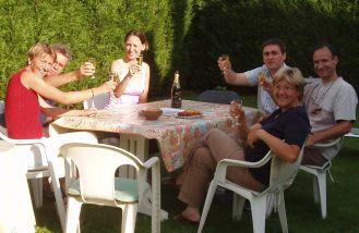 Nous voici donc...en cotume traditionnel d'ingénieur routier! Et oui, BTP quand tu nous tiens... Message déposé le 18.08.2005 à 13:18 - Commentaires (1) La main à la pâte...Début août les derniers préparatifs sont allés bon train! Huis clos en cuisine à Sailly-sur-la-Lys durant tout un week-end, où les 2 familles se sont réunies pour vous préparer....de quoi vous pourlécher les babines!