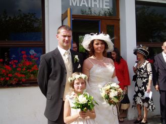 Arrivée à la mairie...BIen sur avec tout ca, on devait arriver à 15h00/15h15 à la mairie mais on est arrivé en retard...tout le monde était énervé...je n'ai fait que crier...mais bon une fois dans la voiture, on se dit c'est bon...arrivée et découverte des invités (pour nous) et des mariés (pour les autres)...ca fait drole de voir tout le monde sur son 31 pour sa petite personne...en tout cas nous étions fiers..  Message déposé le 25.10.2006 à 18:25 - Commentaires (0)