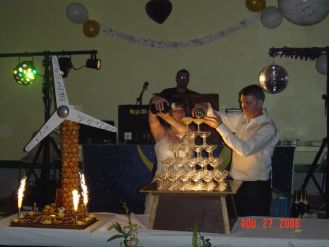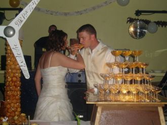 Retour au mariage, salle du repas, l'apéritif :Afin que tout le monde trouve sa place, et que nous fassions des photos de famille, une petite coupe ca rafraichait, car malgré la pluie du matin, il a fait bon et on a sué comme des boeufs...  Message déposé le 29.10.2006 à 10:26 - Commentaires (0)