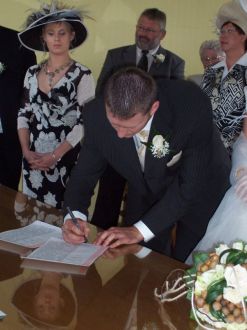 La mairieCa dure environ 20-30 minutes, quand le maire n'est pas ému...car c'était son premier mariage et il était encore plus ému que nous...bla bla bla et signature...  Message déposé le 25.10.2006 à 18:28 - Commentaires (0)