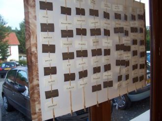 Suite de la déco de la salleLE PLAN DE TABLE : fait par mes petites mains..trop forte odile en travaux manuels...  Message déposé le 25.10.2006 à 19:06 - Commentaires (0)