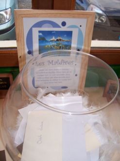 Urne et livre d'orMon urne était un gros verre à cognac, rempli au 1/3 de plumes maintenant il accueille maurice et mauricette, nos poissons rouges, et oui on recycle comme on peut...sinon le livre d'or a été rempli par (presque) tout le monde, je remercie tous les enfants car ils nous ont fait de jolis dessins que nous garderons dans notre album photo...(merci également aux grands enfants genre karen...ben ouais hein!!!)