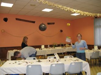 Mise en place sur les tables des petits jeux...
