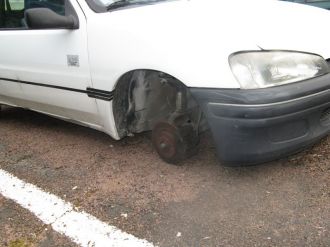 Je sors de la voiture, je fais le tour pour m'apercevoir qu'il me manque la roue avant droite + les 4 enjoliveurs !!!!!!