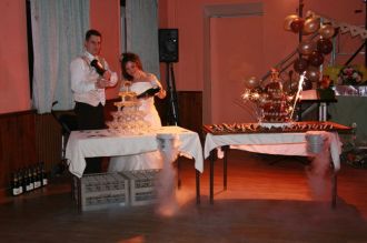 Pendant "l'illumination" de la pièce montée, nous commençons à remplir la fontaine de champagne consciencieusement ...
