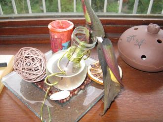 Voici une photo de notre centre de table qui a tenu avec sa fleur quasiment 2 mois après notre mariage ...Trop fort