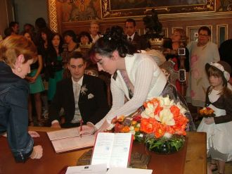 Merci, Merci encore à Géraldine pour ces photos car nous n'avions AUCUNE photo où nos témoins signent devant notre engagement !!!