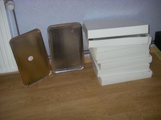 Ce matin j'ai récupéré au boulot quelques boites de traiteurs qu'ils jettent après avoir livré, ça va me permettre de mettre tout ce qui est flammenkuche, ptits fours et pizza pour l'apéro au frigo. Ce sera plus facile à stocker comme ça,y aura plu qu'à empiler.